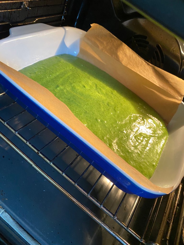 - Cepeškrāsni uzkarsē līdz 180 grādiem. Ar cepamo papīru izklāj taisnstūrveida cepamo formu 20 x 30 cm izmērā.