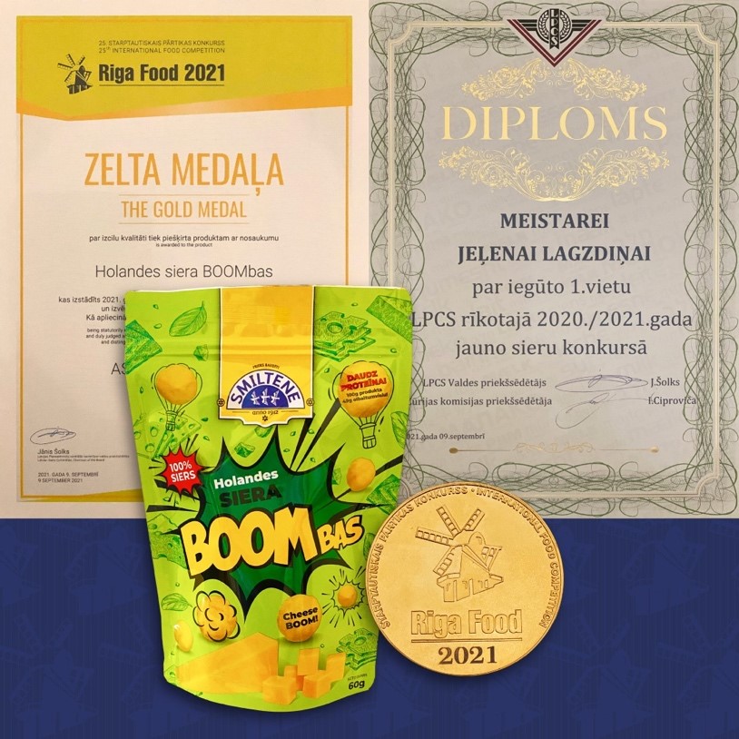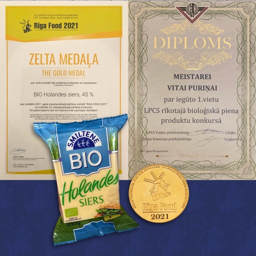 - ZELTA MEDAĻAS par izcilu kvalitāti piešķirtas BIO Holandes sieram un Holandes siera bumbām.